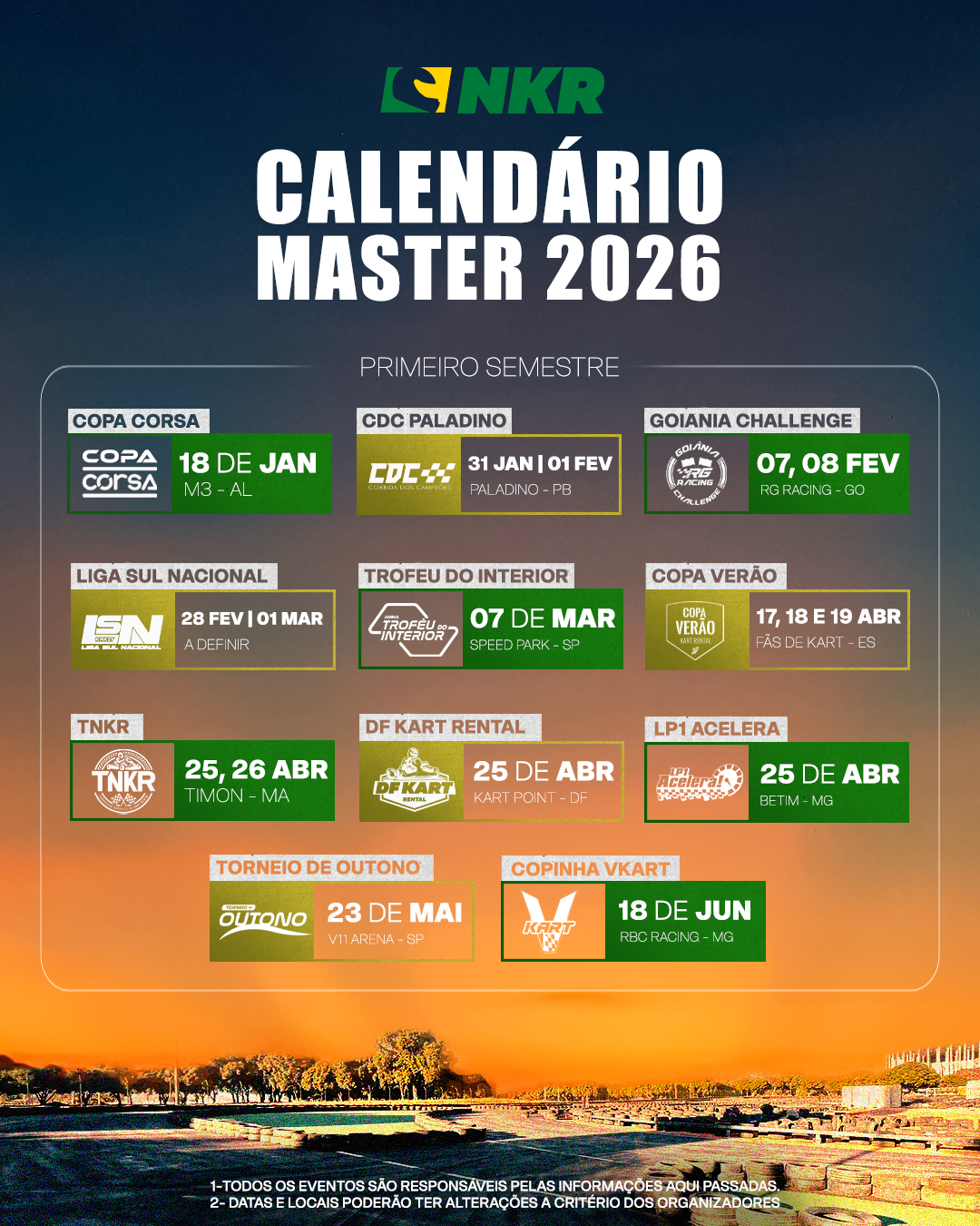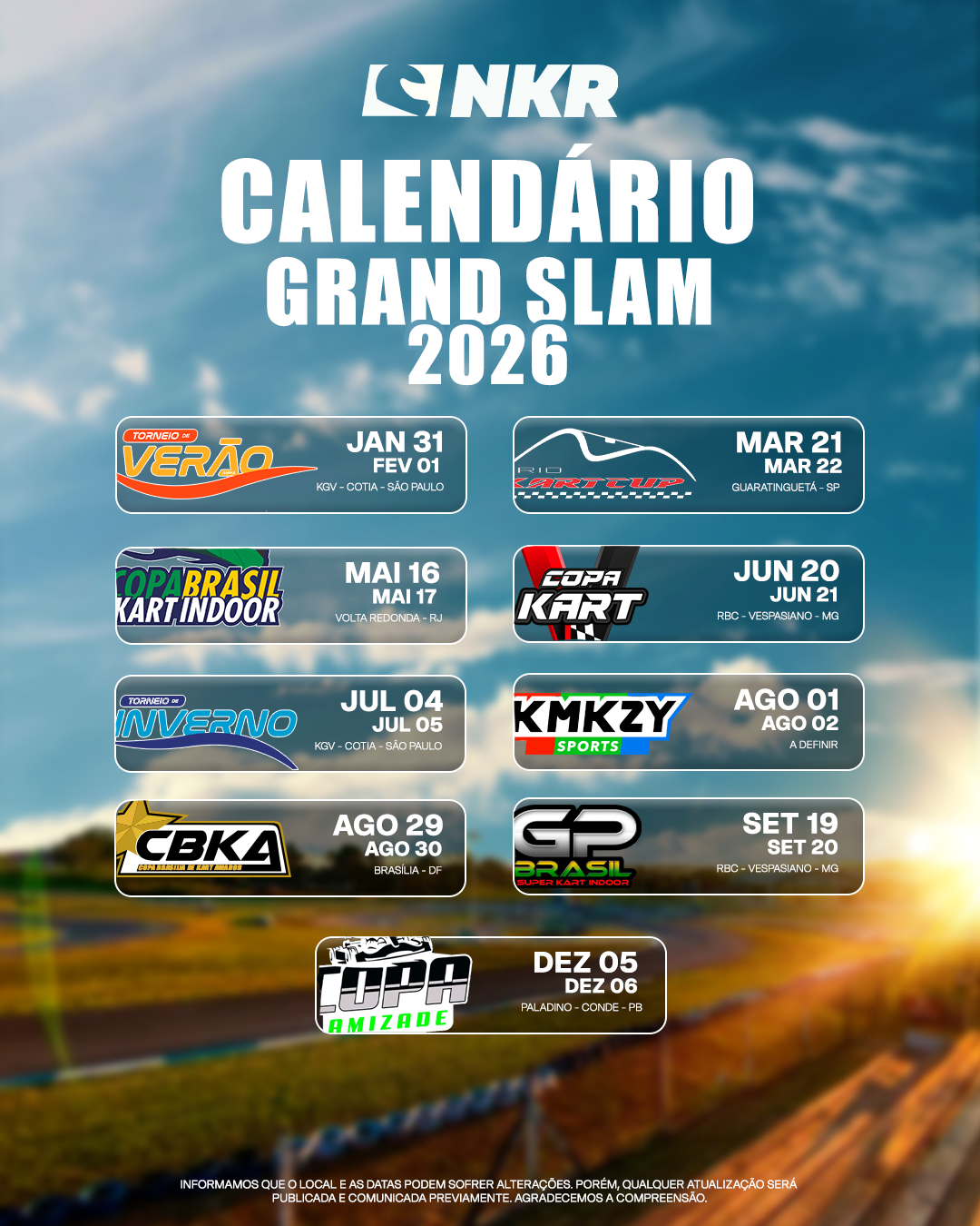 Confira todas as datas dos eventos homologados da liga ao longo da temporada.